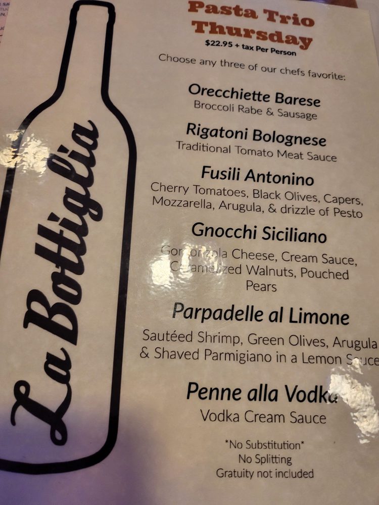Don’t miss out on the dessert selection, especially the indulgent Tiramisu and the classic New York Cheesecake, which are sure to satisfy your sweet cravings. La Bottiglia caters to every need, featuring outdoor seating, happy hour specials, and a full bar, making it an ideal spot for any occasion. Experience Italian dining redefined, where each dish invites you to savor life with good food and good company.